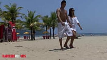 A gorgeous Brazilian is picked up to be loved at the beach.