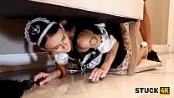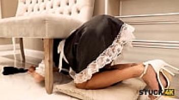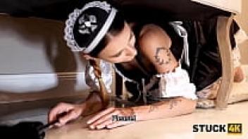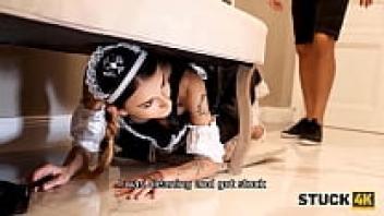 STUCK4K. Instead of helping, the man penetrates the girl who is caught beneath the sofa.