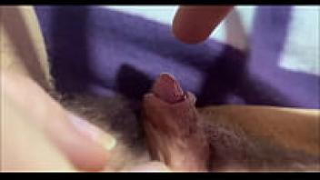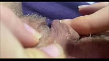 Intense Closeup Wet, hairy pussy rubbing the big clit during an orgasm