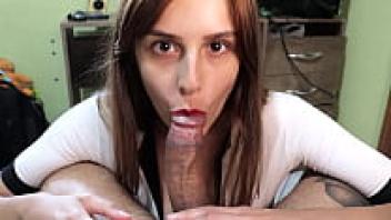 Ball sucking and blowjob from my stepdaughter while my wife is working HD