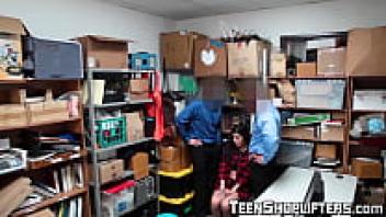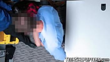 On surveillance footage, a Latina juvenile burglar wearing glasses is seen punishing loved ones.