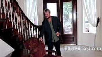 Teenage babysitter Kylie Nicole, who is skinny, was caught with her boyfriend.