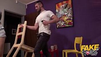 A sex tape threesome is formed by a fake Italian hostel girl with enormous tits.