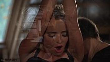 A babety blonde had a bondage slave girl bind up her pussy fingering.