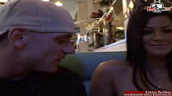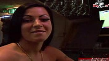 A black-haired babe with pierced nipples and natural tits was picked up