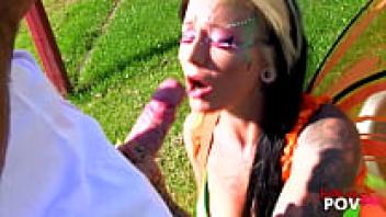 In the forest, hot blondes engage in outdoor public sex.