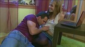 At the PORN casting, a sexy teen wearing spandex leggings and outfitted in love