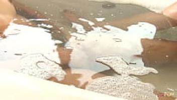 In the comfort of a jacuzzi, this stunning Asian lesbian, who has pierced nipples and full lips, receives the sex treatment reserved for royalty.