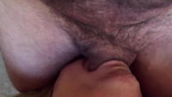 Massive rimjob and cock deepthroat from a small brunette wearing black underwear