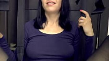 After the Christmas party, a seductive girl plays pussy dildo with passion.