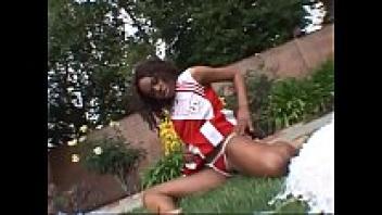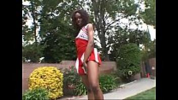 A black cheerleader is getting boned