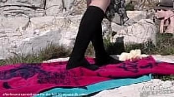 On a French beach, a hairy amateur milf allows a filthy man to climax on her pussy.