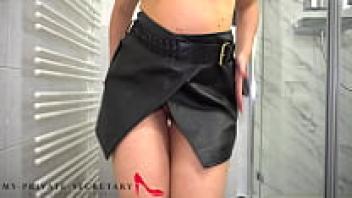 In the office washroom, my private secretary wearing a leather skirt is surreptitiously masturbating.