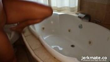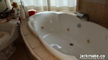 Jerkmate is surprised to see a beautiful blonde babe masturbating in the bathtub.