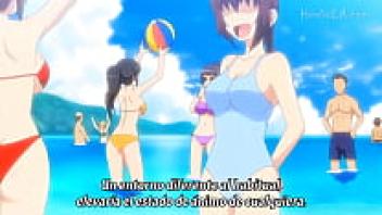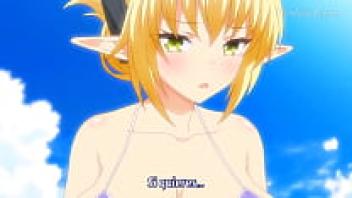 Adorable blonde hentai on the beach