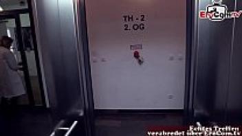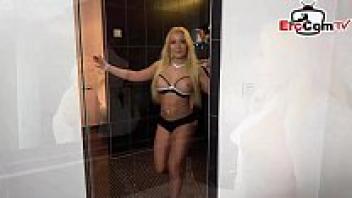 MaryHaze, a skinny German teen, is cheating on her partner in a sauna as her friend waits outside.
