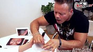 At the Creampie Gangbang party, an elderly man cum inside a young German girl