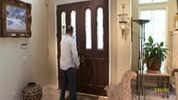 Big fake tits were used in hot and steamy sex after a knock on the door.