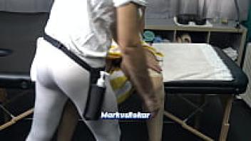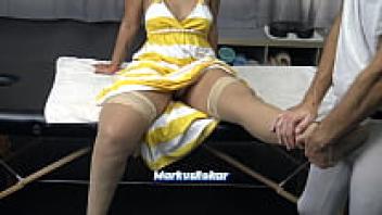 Because she was embarrassed, the sexy stepmother came to give the massage, but she started teasing the masseuse with her transparent underwear.