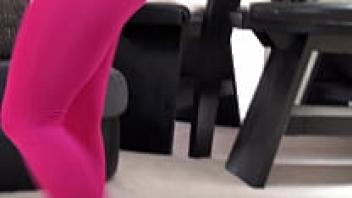 She is adaptable in her transparent pink leggings.