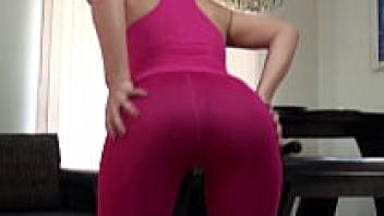 For the first time, a young girl tries a thick cock in her ass while wearing leggings with a flawless ass. -pov anal