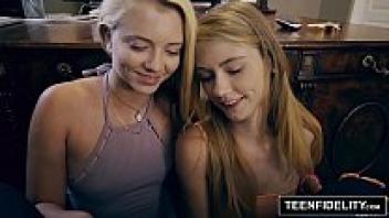 adolescent defiance Riley Star and Hannah Hays, both little teenagers, share a cock.