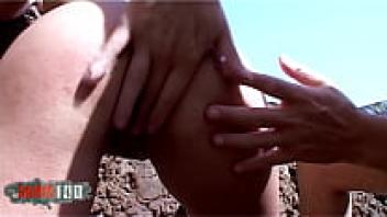 Hardsex on the beach with a blonde beauty with enormous natural breasts