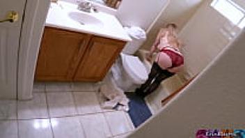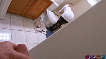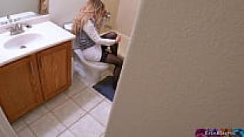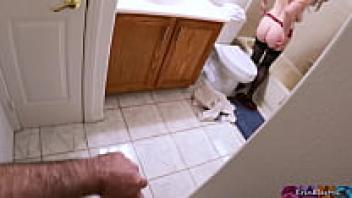 When Stepmom is getting ready to take a shower after work, she notices her stepson watching and masturbating and wants his thick cock inside of her.