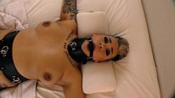 Ball Gagged and Wearing a Hitachi Orgasm Belt in Bondage to Bed