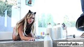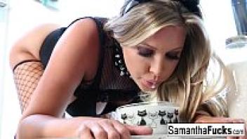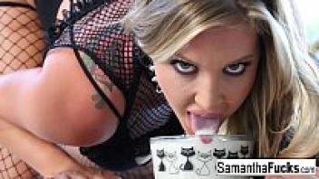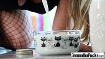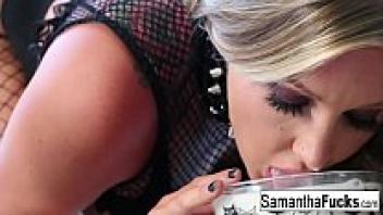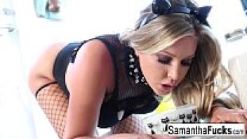 Using a toy, hot blonde MILF Sarah works her juicy pussy.