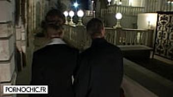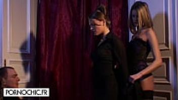 Clothed French chick, lingerie, dogging, heels, stockings, and a black satin dress and panties (1207)