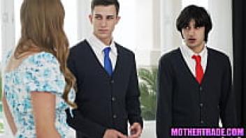 Stepmothers trade quadruple defloration love for virgin stepsons.