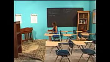 A horny worker uses a drill to break a table, and then he inserts his cock into the pussy of a young student who is tanning in the classroom.