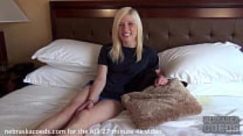 A really attractive and slender blonde records her first hotel video.