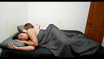 My MILF stepmother became aroused while sharing a bed with her stepmother and stepsister.