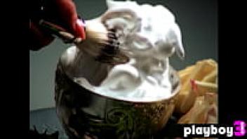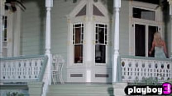 Scarlett Sage, a petite adolescent model, performs a solo striptease for Playboy in a pub.