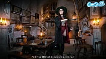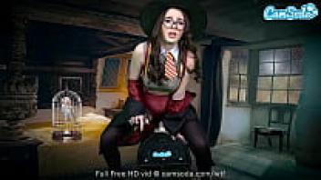 Hermione Granger, a seductive teenage Harry Potter cosplayer, rides a sybian until the big finale