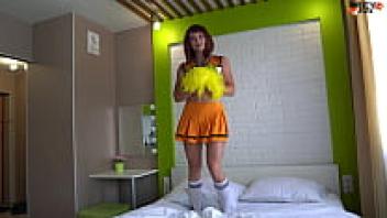 SEXY CHEERLEADER WANTS CUM ON GLASSES AND A COCK IN HER ASS AND THROAT