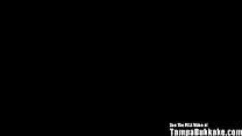 The handcuffed blonde Florida chick gangbang, Tampa Bukakke Girls, features Laura.