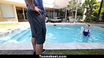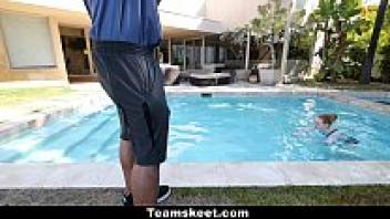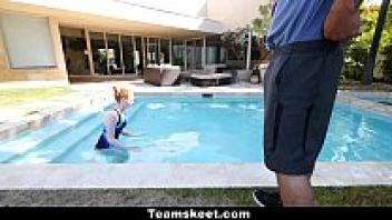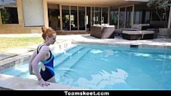 The swimming coach adores CFNMTeens' pale redhead (ruby red).