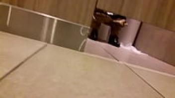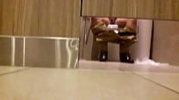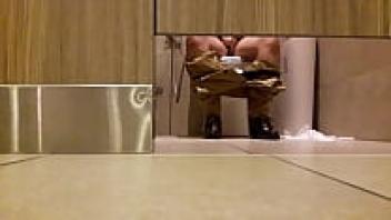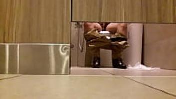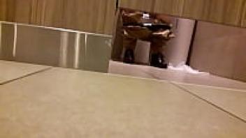 Using a hidden camera, a muscular stepfather was able to spy on his stepson as he was using the restroom.