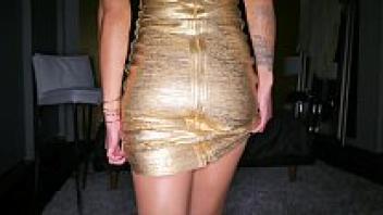 Wearing a blue cotton dress, satin panties, a garter belt, high heels, a blowjob, rimming, a doggystyle, an anal plug, and a facial cumshot, this French beauty is wearing number 277.