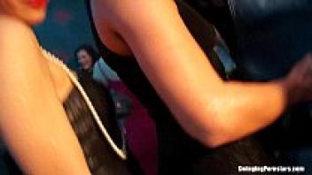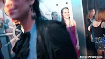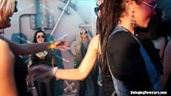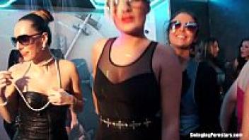 During group sex, the party's babes were used as sex dolls.