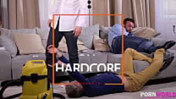 A curvy-assed maid Three cocks cleaned Cindy Shine's holes.