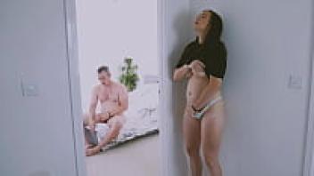 A lustful housewife was discovered spying on her brother.
