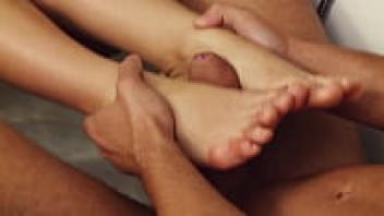 Asian 18-year-old tries footjob to acquire a foot.