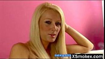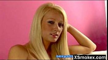 Smoking a cigarette while a hot blonde