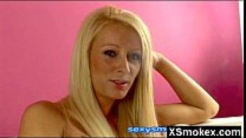 Smoking girl with fat breasts, hungry sex
