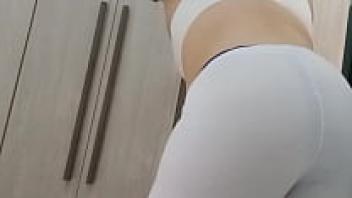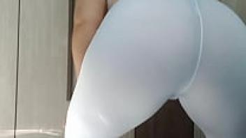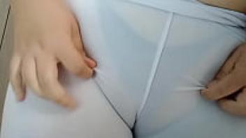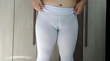 Fetish wearing white leggings and cameltoe