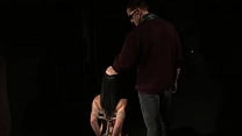 In Master's barn, a submissive babe receives BDSM treatment. Part 1: Master uses his whip to chastise her to obey.